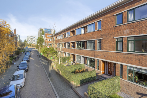 Aan de rustige achterzijde van de woning bevinden zich twee slaapkamers. De hoofdslaapkamer van circa 13 m² biedt voldoende ruimte voor een groot bed en kast. De tweede slaapkamer (ca. 11 m²) is ideaal als logeerkamer, thuiskantoor of kinderkamer. Beide kamers profiteren van het duurzame klimaatsysteem en blijven zelfs in de zomer aangenaam koel.
